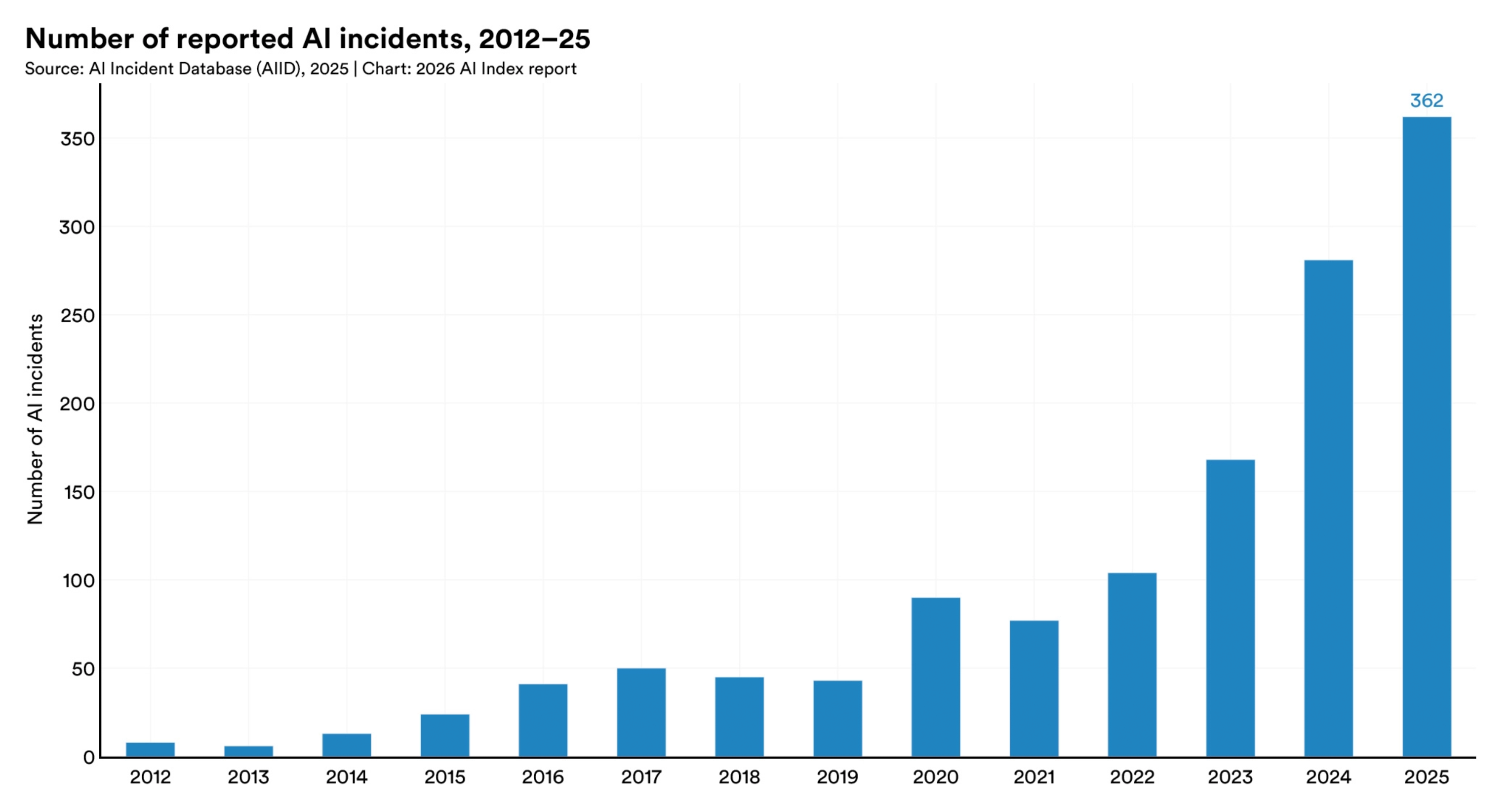 Почти все ведущие разработчики передовых моделей ИИ сообщают об улучшении технических результатов работы, но отчетность по показателям ответственного ИИ остается неполной. Количество задокументированных инцидентов ИИ выросло до 362 по сравнению с 233 в 2024 году. Недавние исследования показали, что улучшение одного аспекта ответственного ИИ, такого как безопасность, может ухудшить другой, например, точность.