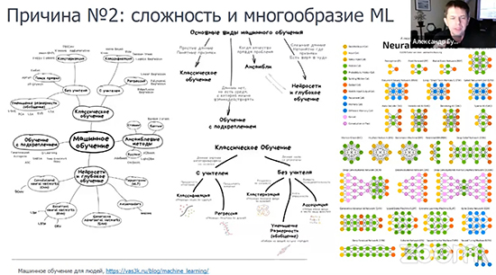 Александр отметил, что в настоящее время есть острая проблема с доверием к применению технологий ИИ. Это связано с тем, что рынок большой , много хайпа и много спекуляций. Некоторые разработки, позиционируют себя нужным образом в рекламных целях, т.е. технологии ИИ могут и не применяться. Выяснить использует ли производитель машинное обучение сложно, даже на этапе клинических и технических описаний, т.к. продукт зачастую может быть представлен в скомпиллированном виде.