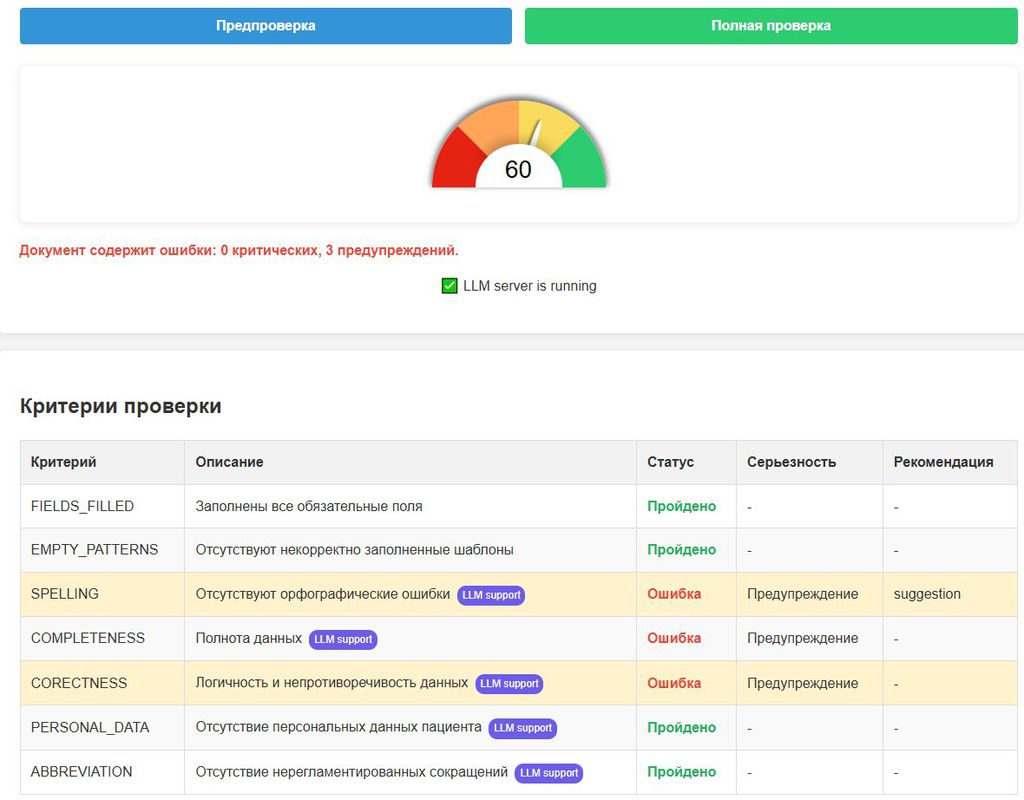 Предназначен для автоматической проверки, оценки качества и помощи в исправлении медицинских документов