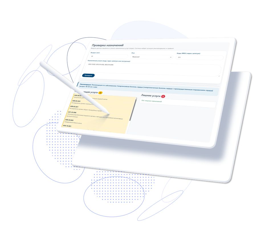 Формирует персональный список рекомендованных врачебных назначений онлайн